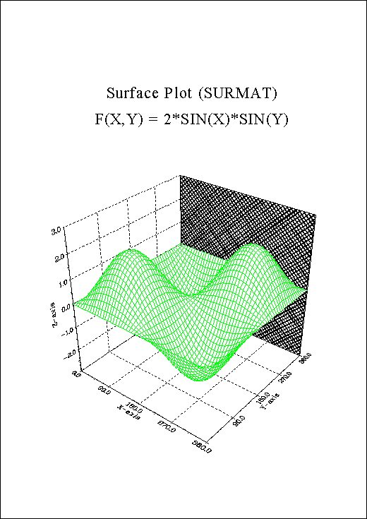 CALL TITLIN('F(X,Y) = 2*SIN(X)*SIN(Y)',4)