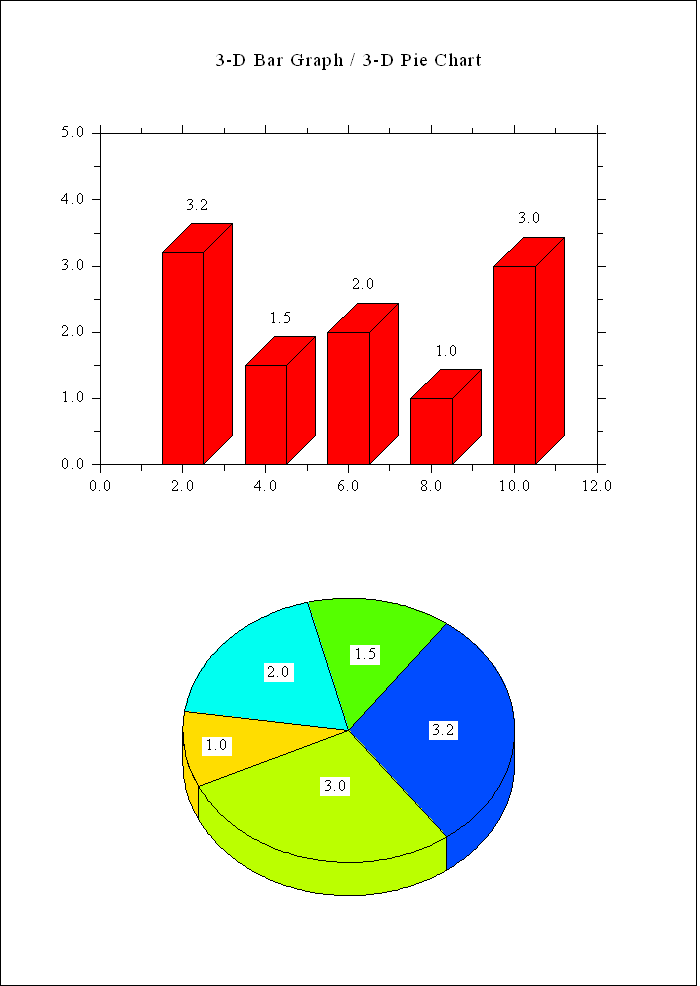 DISLIN Examples: 3-D Bar Graph / 3-D Pie Chart