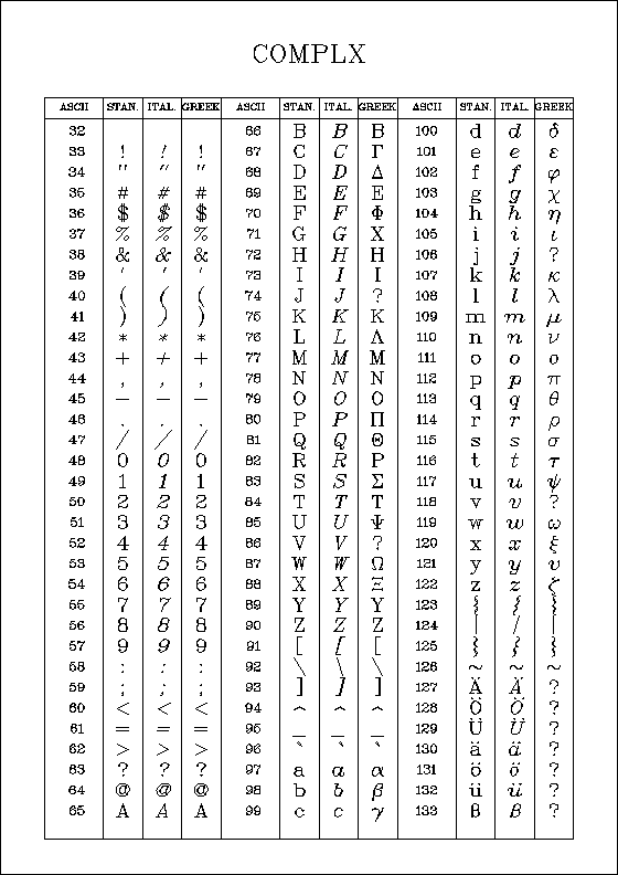 Figure 6.7: COMPLX Character Set